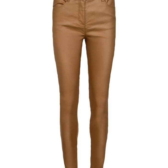 Te hlače so narejene iz strukturirane tkanine z udobno raztegljivostjo ter videzom in otipom denim.
